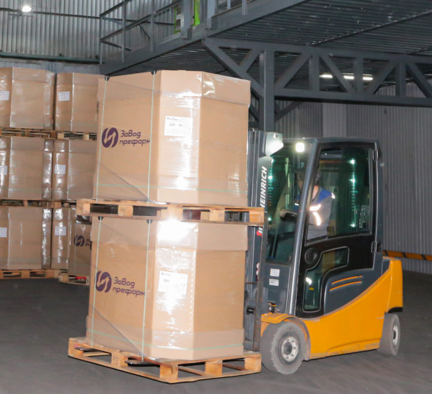 Pallets are arranged as follows: 5 boxes horizontally and no more than 5 rows vertically. To ensure the tightness of the package, as well as increase the strength, the formed pallet is wrapped with a stretch film.